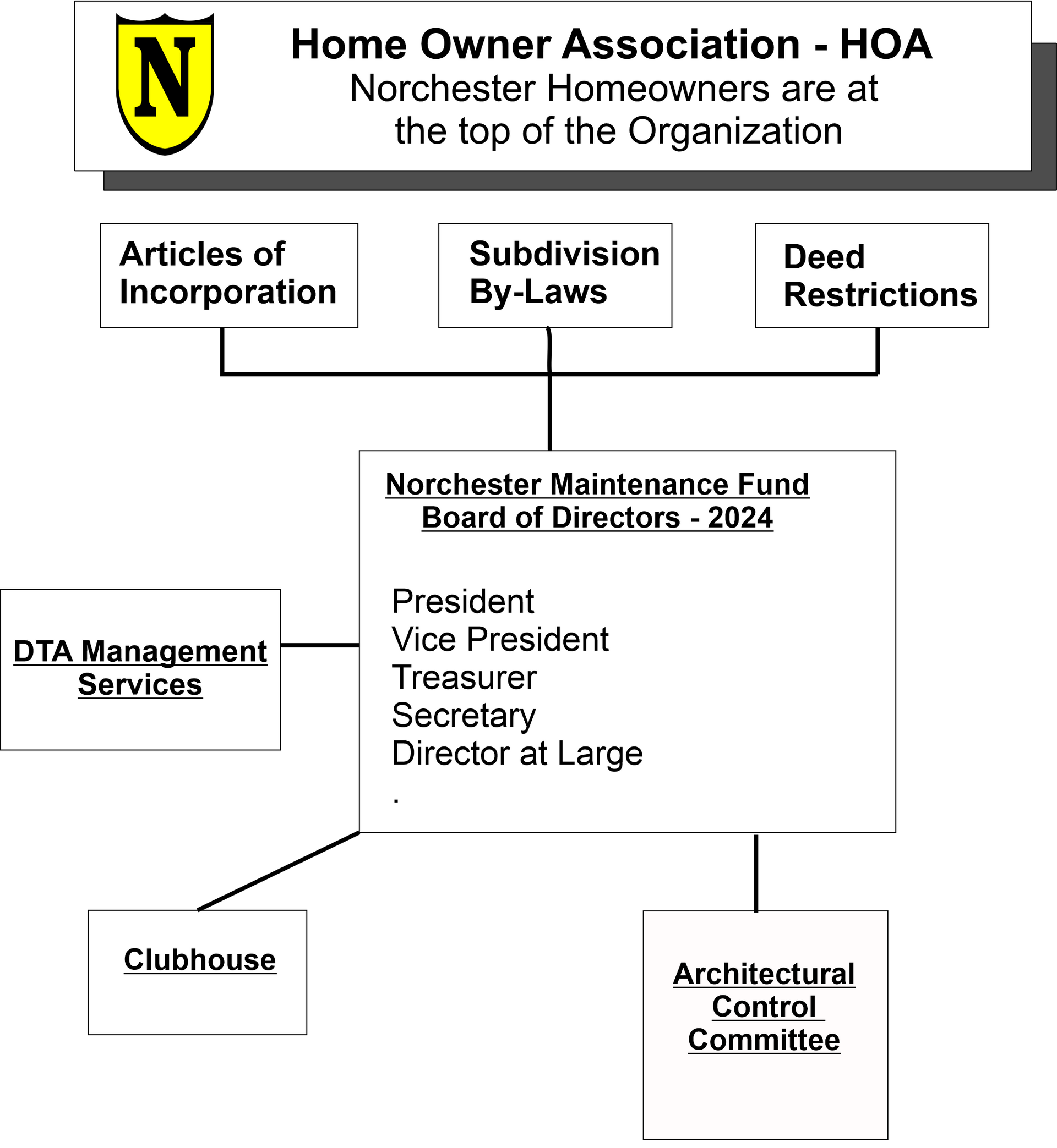 Norchester Maintenance Fund, Inc. (NMF) is a business entity incorporated in Texas, as a non-profit corporation; tasked with the responsibility to administer the business affairs of the Norchester Subdivision. This business is managed by an elected Board of Directors, who are property owners in the Subdivision.