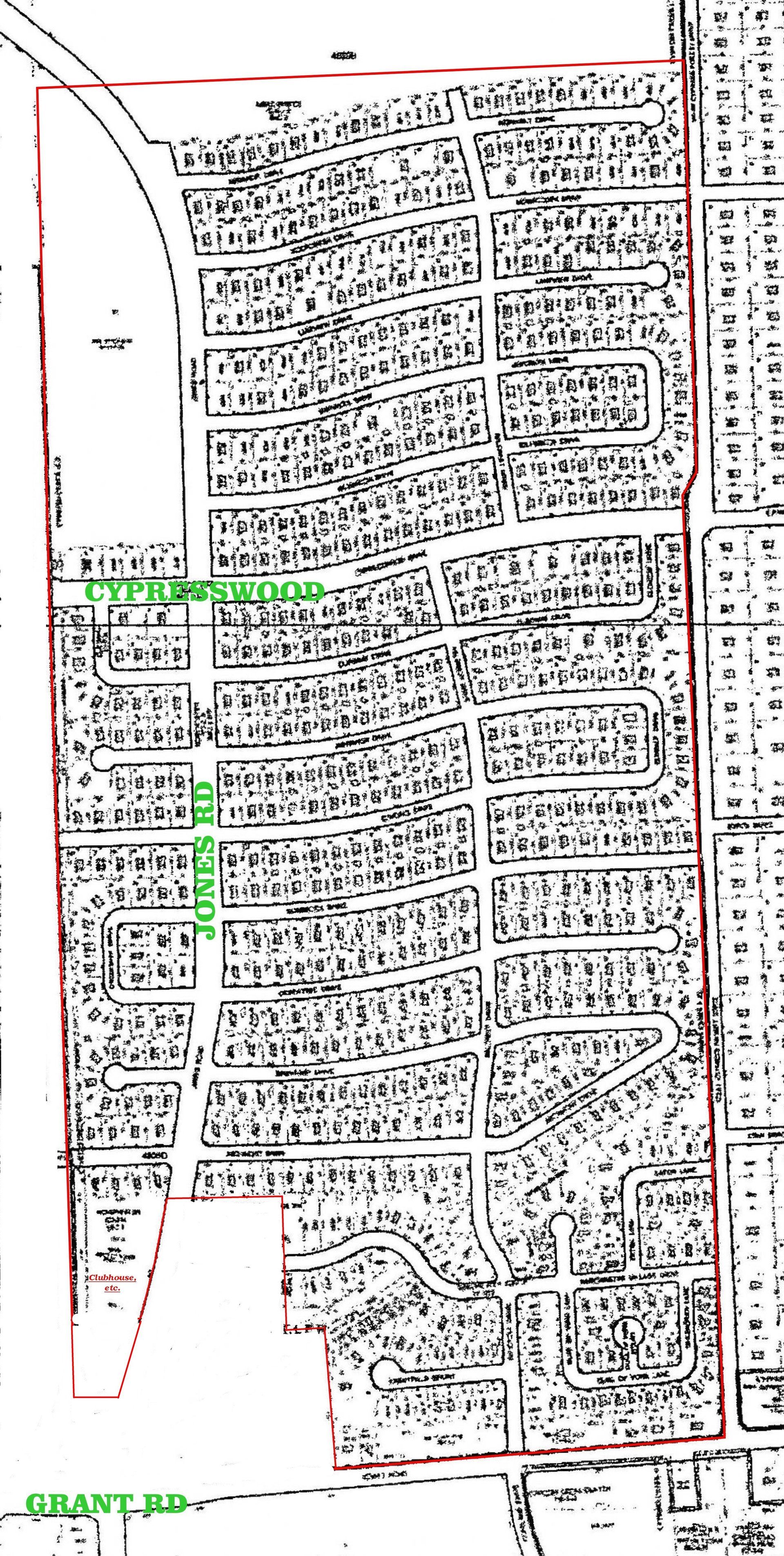 The maps below show the boundary lines for lots in the Norchester Subdivision. The total subdivision encompasses the Norchester Sections 1, 2, & 3, plus Norchester South.