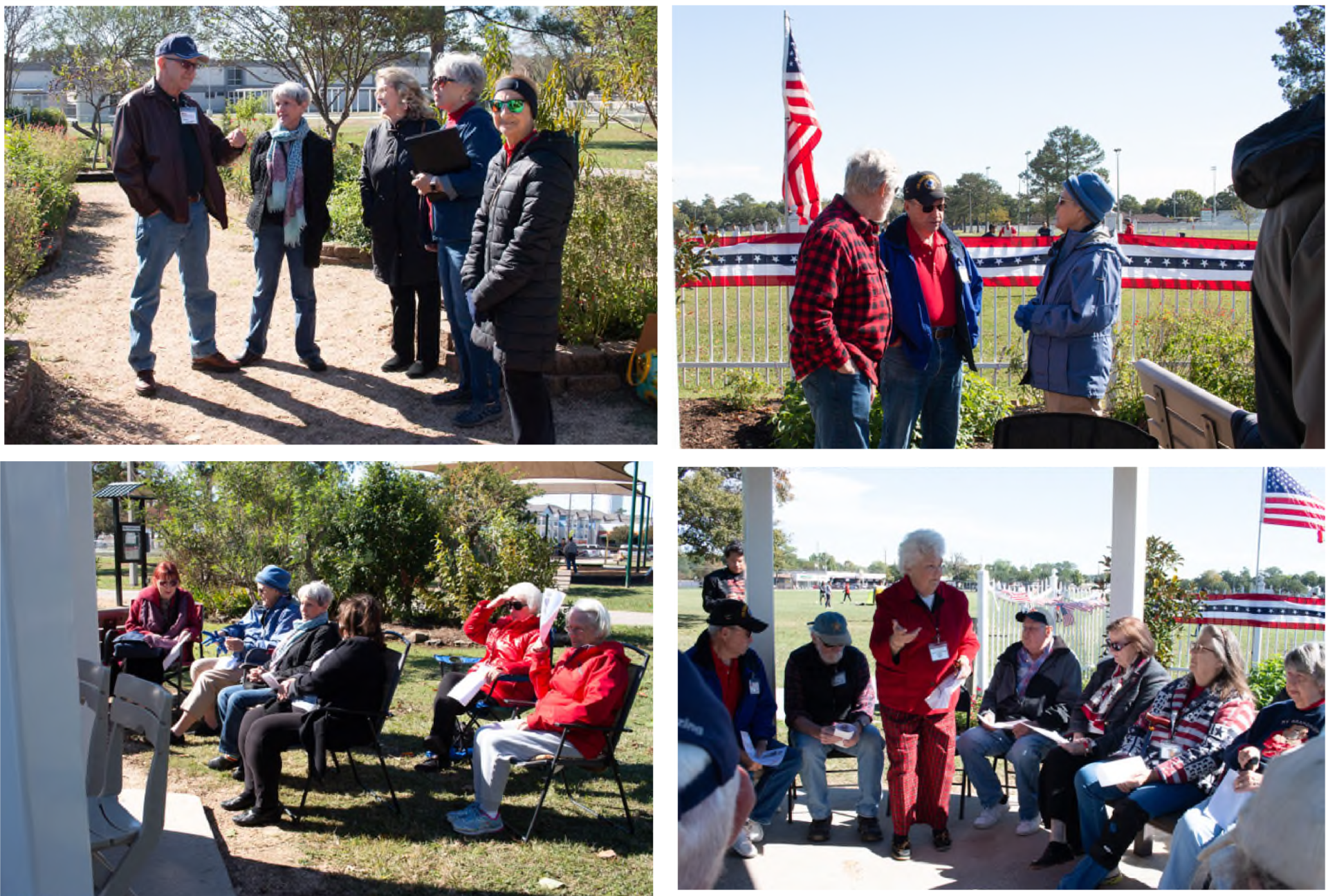 The Norchester Garden Club dedicated to our area Veterans the Never Forget Garden in the Butterfly Garden at Matzke Park. It was a moving tribute to the men and women who have given a part of their lives in service to our country. We remembered three Veterans who have died since our last Veterans Day program in the park and honored the Veterans in attendance on Saturday. Each had an opportunity to speak about their time in service. Plants were chosen specifically for the Never Forget Garden. A magnolia tree for nobility, and white roses for purity and innocence, blue salvia for thinking of you, and pansies for remembrance. Our dedication ceremony concluded with a moving rendition of taps performed by two members of the Cy-Fair High School band. (Photos by Deb Evans.)
